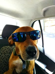 Cette année a vu l’intégration du 1er stagiaire à 4 pattes ! : Rubis, la première chienne de l’aventure ADH (en photo ci-dessous), s’est acclimatée à ce nouvel environnement avec la plus grande sérénité. Lunettes sur le nez et attitude zen, elle était prête pour les activités.